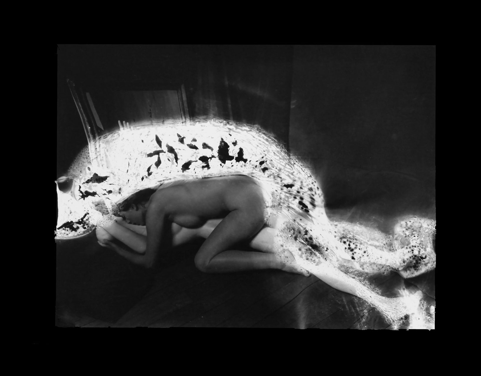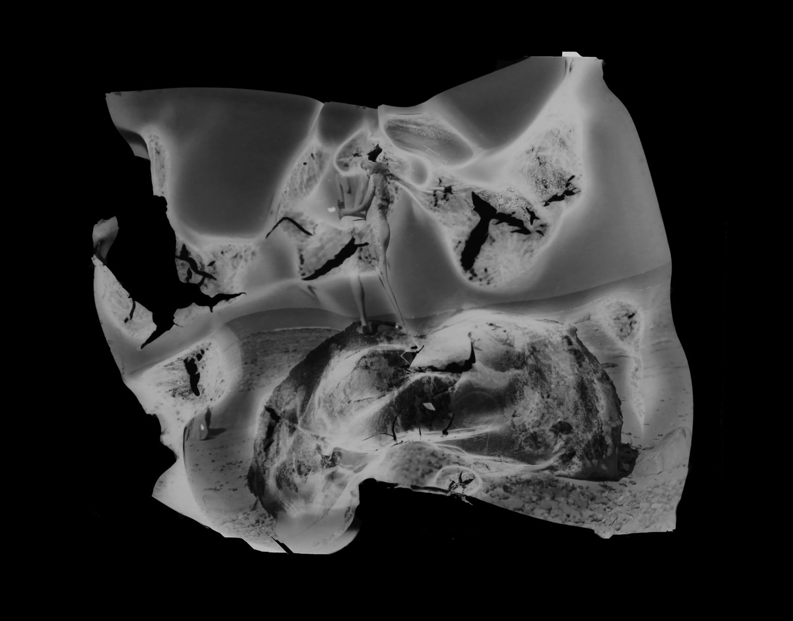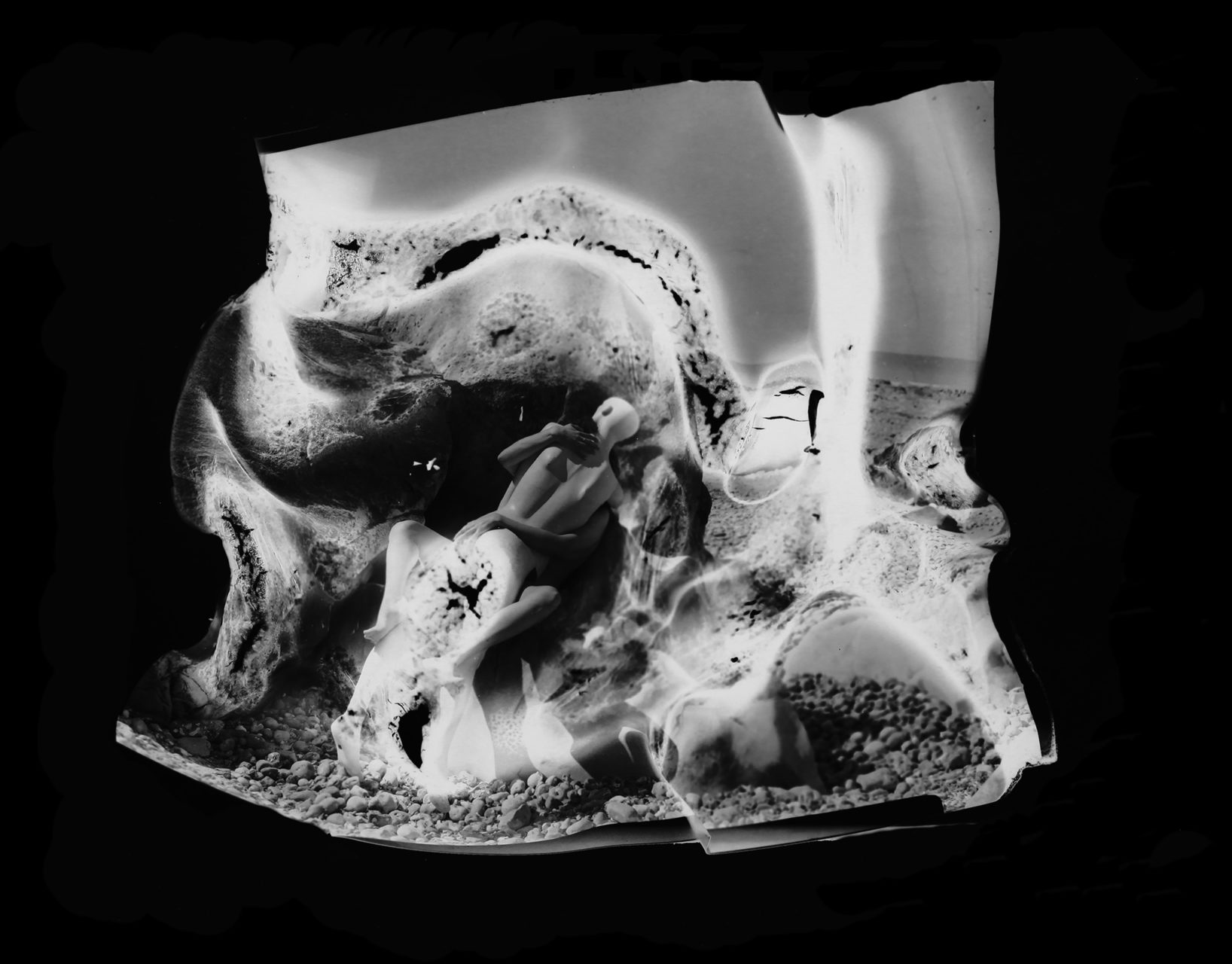 For the most painful, we wanted to erase the open wounds they still caused. We tore them up to get rid of the emotion associated. But with silver photography, there is always a trace left: the negative. My idea was to erase the memory at the source, where it can disappear forever and for good, by burning these negatives. I photographed models (in studio and outdoor) with 10 cm x 12 cm negatives. Unusual, this size helped me to precisely target the areas to burn. As often, the result turned out to be very different from what I had imagined. The negative is twisted, bloated, disturbed, close to a surrealist work of art. And the photo prints, for their part, exude a dreamlike quality that questions the look. What do we see in these distorted forms? What memory(s) does it conjure up?”