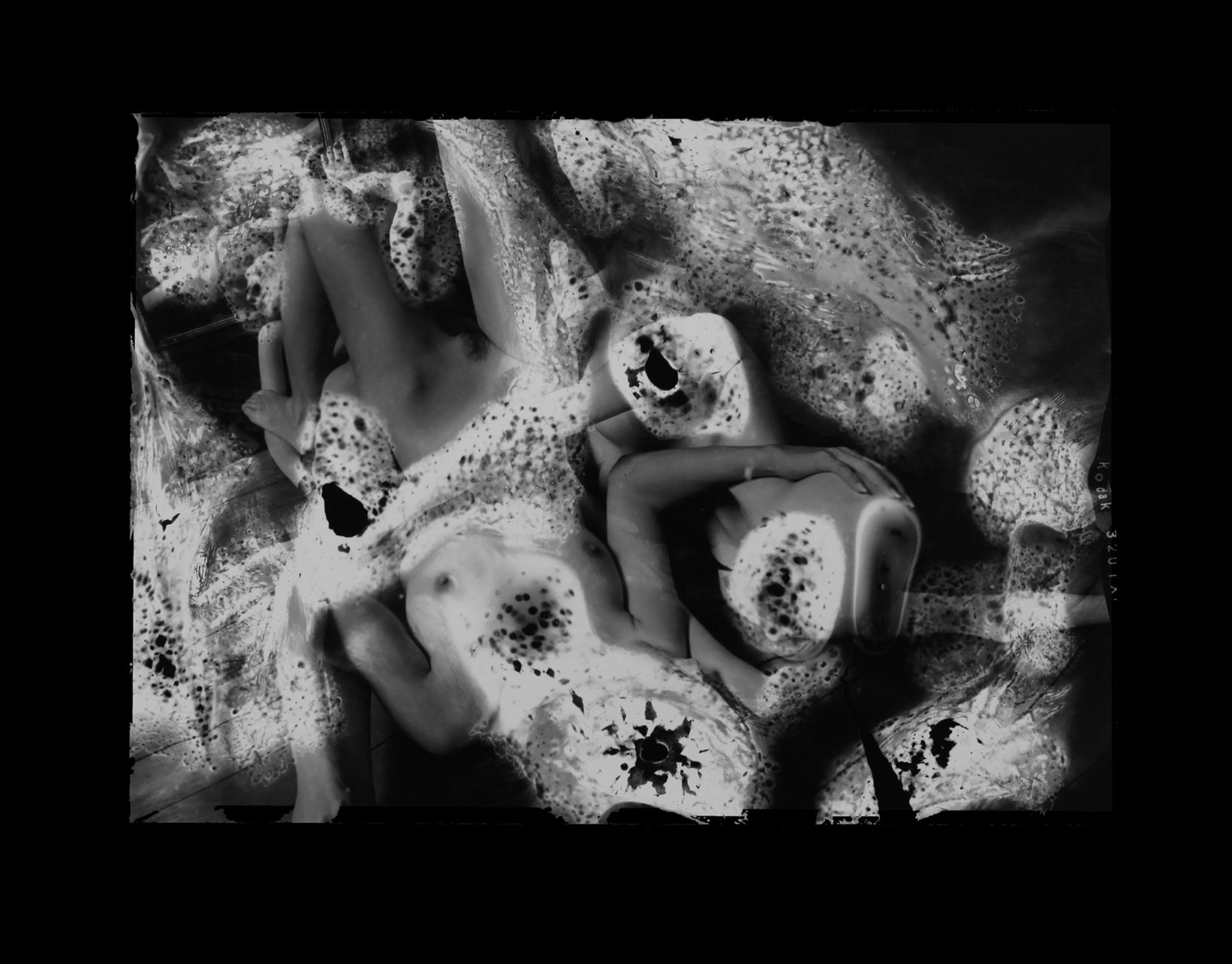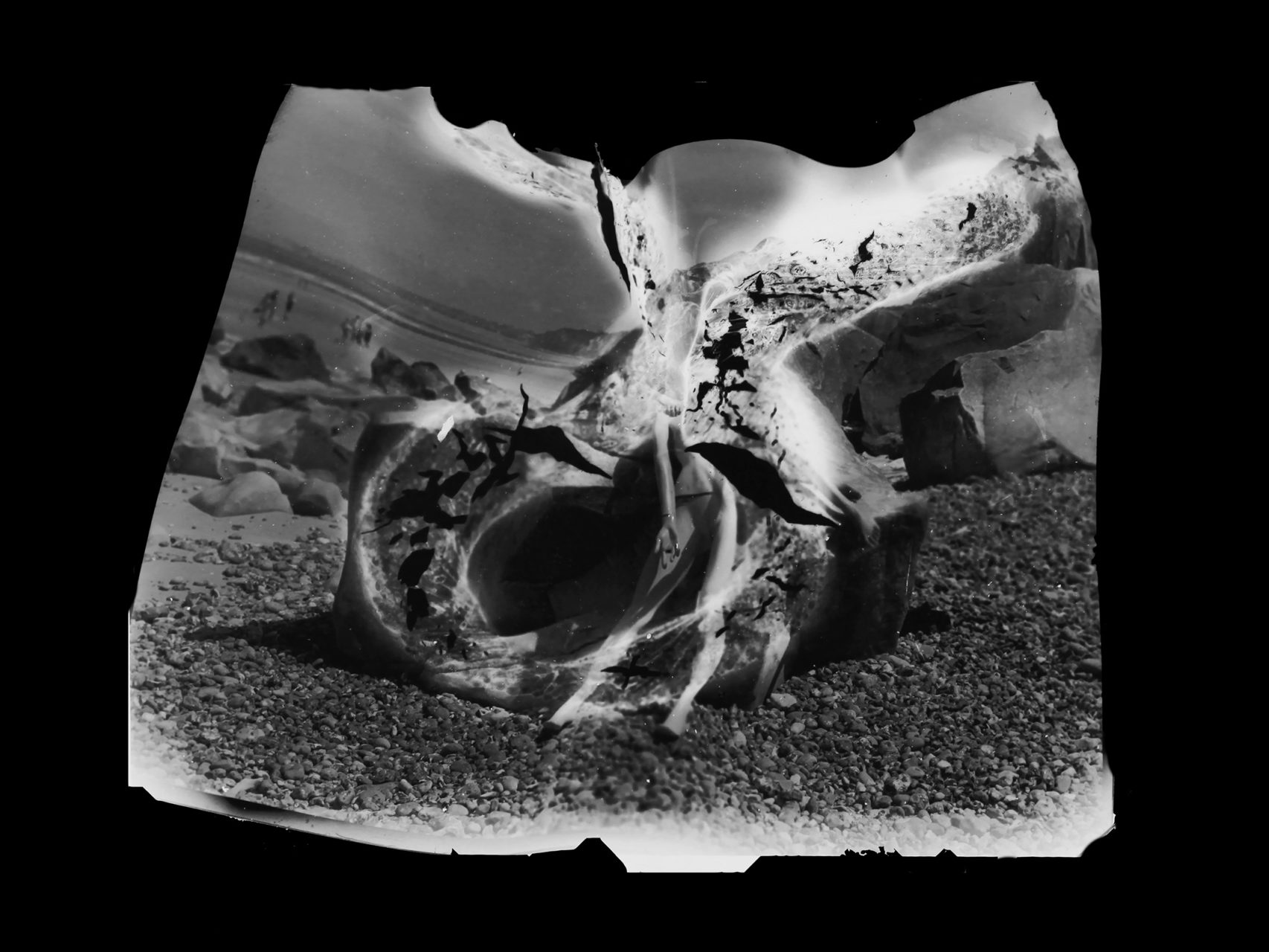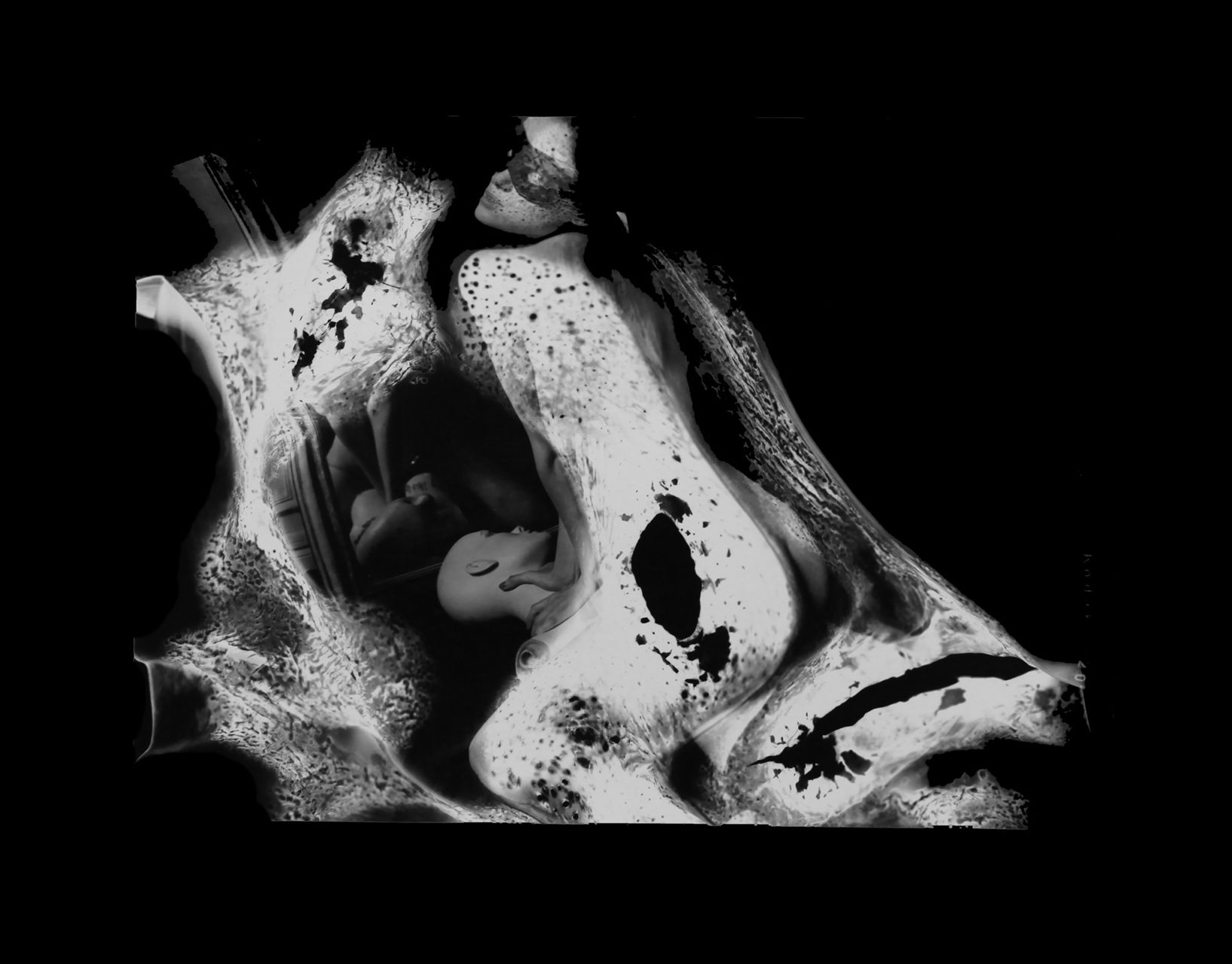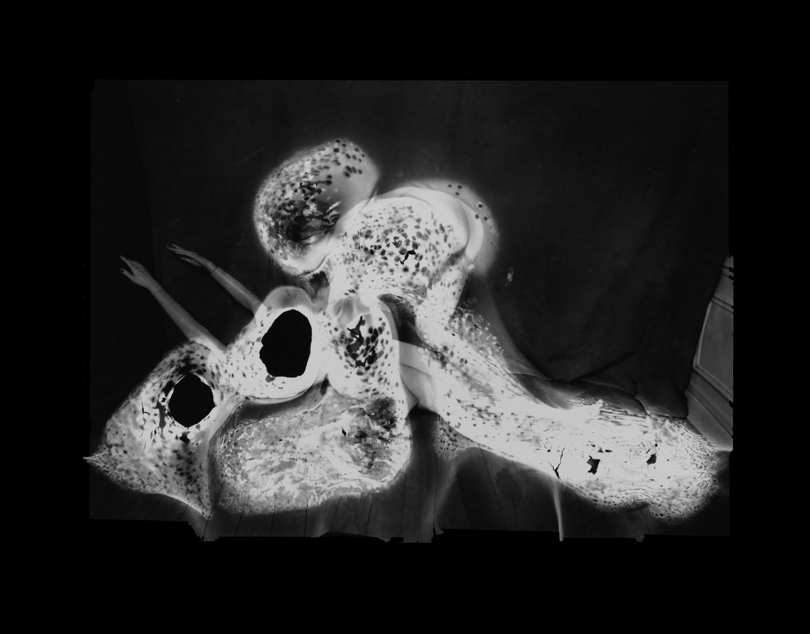 For the most painful, we wanted to erase the open wounds they still caused. We tore them up to get rid of the emotion associated. But with silver photography, there is always a trace left: the negative. My idea was to erase the memory at the source, where it can disappear forever and for good, by burning these negatives. I photographed models (in studio and outdoor) with 10 cm x 12 cm negatives. Unusual, this size helped me to precisely target the areas to burn. As often, the result turned out to be very different from what I had imagined. The negative is twisted, bloated, disturbed, close to a surrealist work of art. And the photo prints, for their part, exude a dreamlike quality that questions the look. What do we see in these distorted forms? What memory(s) does it conjure up?”