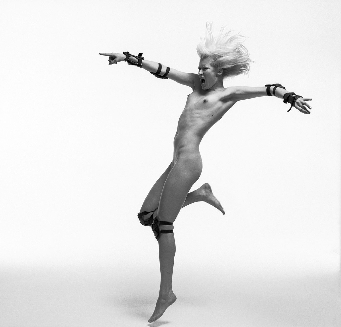 La grande différence avec la photographie de mode, c’est qu’avec ce projet, j’ai pu donner vie à mes idées tout de suite. Ici, aucun maquillage, aucun artifice. Seulement la nudité et l’instantanéité du moment. Cette impression d’un réel saisi sur le vif se manifeste à travers la sincérité des émotions exprimées et l’énergie de ces corps en extension. Lorsque les modèles que je photographie nus interprètent les poses que je leur suggère, leur cerveau est concentré sur une seule et même chose : comment vont-elles retomber au sol ? Cette attention extrême portée au moment présent explique la puissance qui se dégage de ces images. De façon assez instinctive, j’ai ajouté à ces corps dynamiques de femme des accessoires variés, les érigeant en héroïnes des temps modernes. En Guerrières. Depuis, le projet GUERRIÈRES a essaimé ses champs de bataille à Paris, Arles, Reims et dans le Jura.